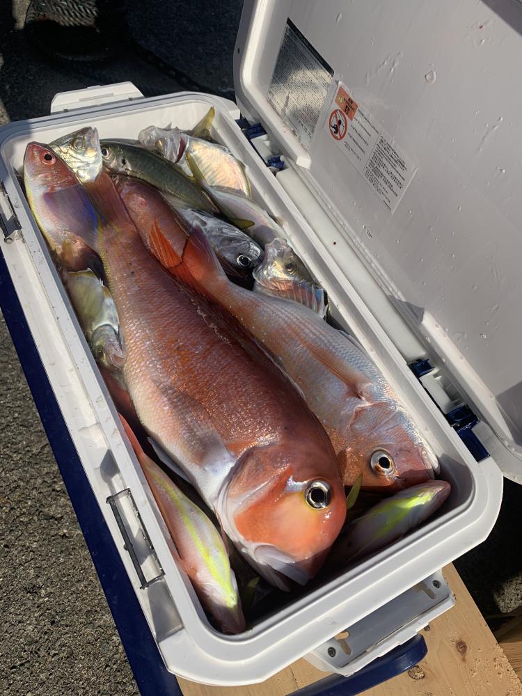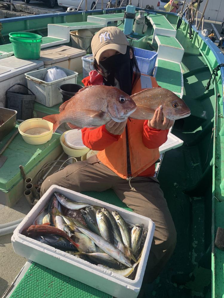 マダイ船中3枚、サバ、アマダイ、イトヨリ、カイワリ、ヒラソウダ、などなど!