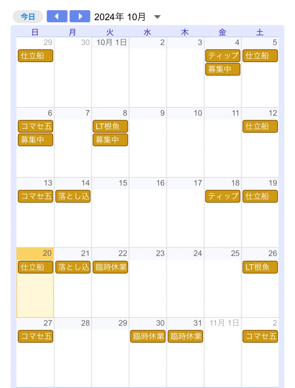 10月の出船予定